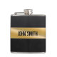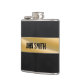 The flask itself is fine. It’s a cheap flask, obviously bought in bulk, however am prepared to overlook that. Given that it is a personalized item, I would have liked to have seen gift boxing instead of the generic packaging. Terrible printing, and/or quality. It’s a cheap, tacky vinyl. It is not cut straight and is also applied in a way that it is overhanging the bottom, causing the glue to catch on items and it will eventually roll and tear, damaging the wrap.