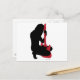 Silhouette of a girl with a guitar. Girl is in black and guitar is in red.
