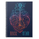 This notebook design celebrates the love of music and guitar. It has a simplistic illustration of an electro guitar surrounded by a large neon heart and musical notes.