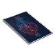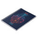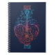 This notebook design celebrates the love of music and guitar. It has a simplistic illustration of an electro guitar surrounded by a large neon heart and musical notes.