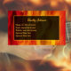 On the back, the card is framed by the flame image, with a black overlay that lets a bit of the flame show through. There are text boxes for you to add your name and any other contact details you want or don't want. It's your choice. This guitar lessons business card template makes it easy to make this dynamic card your own and conveys a bold statement.