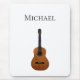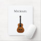 Music monogram mouse pad, with an acoustic guitar image set on a white background. With black customisable lettering, you can personalise with your own name. This simple item is great for adding a musical touch to your home office.