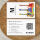 This business card design is a perfect blend of vibrant art and professional networking for musicians. Featuring a psychedelic acoustic guitar, semi-acoustic guitar, and electric guitar in bold, bright colours against a striking white background, it offers a unique, eye-catching look. The card includes a personalised monogram, adding a touch of individuality. It’s an ideal tool for guitar tutors, guitarists, music teachers, entertainers, and professional musicians who want to stand out and make lasting impressions. The easy-to-use template allows for seamless integration of essential contact details, a website QR code, and social media icons, ensuring that all your important links are readily accessible. Designed by artist Catherine Sweetman, this card combines modern style with functionality, making it perfect for business networking in the music industry.