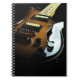 Hard back notebook, eighty lined pages of fine quality paper. With ring binder. The front design is in a shiney vintage guitar on a black background.