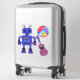 The stick looks amazing. Unfortunately, it would not stick on our suitcase as it was textured. When we found a non-textured (smooth) suitcase, the sticker stuck and looks great. The printing looked awesome.