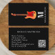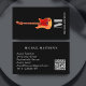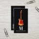 Flame and red pick guard electric guitar design on a black background with Personalised monogram name and QR Code. Add Your own details using the template to create a professional business card. The perfect design for guitarists, musicians and music teachers. Simple classic original artwork and typography by artist Catherine Sweetman