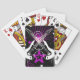 Cool playing cards that feature a black background and a design of 2 white crossed guitars, purple stars, a sunburst. These playing cards are cool to get your friends together and have a card game.