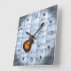 Guitar ~ Rolled Sheet Music ~ Blue Tint Background Square Wall Clock