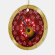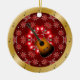 Guitar Christmas Ornament Silver & Red with Musical Notes on Gold Background