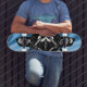 Every kid will want one of these great skate boards. This quality skate board has a cool creepy guitar playing skeleton design with a swirling blue background. Perfect holiday gift for boys into the extreme sport of skate boarding.
