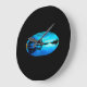 Guitar Sunset Sky Trees City Lake Reflection Large Clock