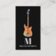 Colourful and gold pick guard electric guitar design on a black background with Personalised monogram name. Add Your own details using the template to create a professional business card. The perfect design for guitarists, musicians and music teachers. Simple classic original artwork and typography by artist Catherine Sweetman