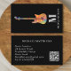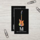Colourful and gold pick guard electric guitar design on a black background with Personalised monogram name and QR Code. Add Your own details using the template to create a professional business card. The perfect design for guitarists, musicians and music teachers. Simple classic original artwork and typography by artist Catherine Sweetman