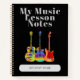 Funky Psychedelic Personalised Music Guitar Teacher custom student lessons notebook. Whether you're a music teacher, student, or guitarist, this unique customised musical instrument lessons student notebook offers an easy to use template that allows you to personalise with a student name and all your brand details on the back, with your name and monogram, contact details and website QR code. Help your students organise their music lesson notes, homework practices and even songwriting lyrics, and ideas in style with this Funky Psychedelic Music Guitar Teacher lessons notebook for students. Featuring vibrant pop art illustrations of electric guitar, acoustic guitar, and semi-acoustic guitars in bold, psychedelic colours, this custom musical instrument lesson notebook is the perfect blend of function and creativity. The unique design celebrates the energy and diversity of guitars, making it an ideal gift for any musician, guitarist, or music lover. As any guitarist will tell you, there’s always room for more guitars and this fun, colourful guitar personalised music lessons student notebook is a tribute to that spirit. With original pop art artwork by artist Catherine Sweetman, it’s a vibrant way to keep your music materials organised and inspired.