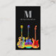 This business card design is a perfect blend of vibrant art and professional networking for musicians. Featuring a psychedelic acoustic guitar, semi-acoustic guitar, and electric guitar in bold, bright colours against a striking black background, it offers a unique, eye-catching look. The card includes a personalised monogram, adding a touch of individuality for each user. It’s an ideal tool for guitarists, music teachers, entertainers, and professional musicians who want to stand out and make lasting impressions. The easy-to-use template allows for seamless integration of essential contact details, a website QR code, and social media icons, ensuring that all your important links are readily accessible. Designed by artist Catherine Sweetman, this card combines modern style with functionality, making it perfect for business networking in the music industry.