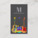 Make a lasting impression with this vibrant business card, designed specifically for musicians and guitar tutors. Featuring original artwork by Catherine Sweetman, the card showcases a striking array of psychedelic acoustic, semi-acoustic, and electric guitars in bold, bright colours against a sleek grey background. This visually arresting design ensures you'll stand out, making it an ideal tool for professional networking within the music industry.