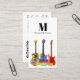 Guitar music teacher website QR code social media custom business card. Easy to use templates for website QR code, contact details and personalised monogram with social media icons perfect for business networking. Psychedelic acoustic guitar, semi acoustic guitar and electric guitar in bright colours on a white background complete with personalised monogram, name, details and your website QR code. Cool modern musicians business card design for guitarists, professional musicians, entertainers and music teachers. Original artwork by artist Catherine Sweetman