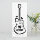Funky save the date guitar illustration with two love birds. Backside open for additional content, illustration on back is detail of two love birds and music notes.
