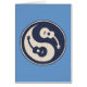 Yin-yang symbol with acoustic guitars, blue and tan, light distress cracking.