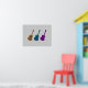 Graphic stylized design of three acoustic guitars, in different colors. The gray background is customizable