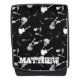 Repeating pattern with white illustrations of guitars on black background with name (light colour and dark colour to create drop shadow) on customisable backpack. You can easily change size and position of the design and change text (font, colour, size and position) by clicking the customise button. Available with black design on white, green, yellow background. Matching shoes, tie, Iphone case...