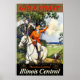 Vintage railroad travel poster for Illinois Central's Panama Limited services to the Gulf Coast of Mississippi.