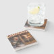 The coasters are gorgeous, a quality feel and heavy weight. They look like a precious archeological find. A rustic stone juxtaposed with a modern floral black and white print. I like the way the print goes slightly imperfect on the cut stone edges giving them a kind-of natural beauty.