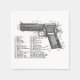 A vintage image of a gun diagram for a semi-automatic 45 calibre handgun.
