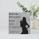 Square pearl shimmer invitation with an image of a silhouette of a gun moll, gun in hand, on a grey stone wall. Customisable text. The back has the grey stone wall image. See matching favour bag, favour box, favour tag, medium gift bag, label, save-the-date magnet, square sticker and custom-cut vinyl sticker. See the entire Roaring 20s Invitation collection in the INVITES | Invitations & Cards section.