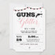 Guns or glitter, He or She? This invitation is for a fun gender reveal party. All text below He or She is custom to your event.