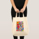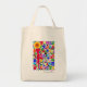 The printing came out very well, better than I had anticipated. The natural color fabric is sturdy with strong seams and comfortable handles. This tote fits easily over my shoulder. As it is filled, the bottom flattens out--very cool! I would buy this product again. This grocery tote holds a lot of groceries! The image quality was very good. The colors were a little darker than I had expected. The darkness may have been due to printing on a natural color fabric rather than on white. The cat design is attractively centered on the tote. The spirit of the design is very lively, just as it appears on the Zazzle website.