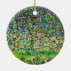 Ornament featuring Gustav Klimt’s painting Apple Tree, I (1912). A colourful red apple tree stands in a green field of purple, pink, yellow, and white flowers. A perfect gift for fans of Art Nouveau and Austrian art.