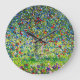 Clock featuring Gustav Klimt’s painting Apple Tree, I (1912). A colourful red apple tree stands in a green field of purple, pink, yellow, and white flowers. A perfect gift for fans of Art Nouveau and Austrian art.