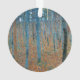 This is based on classic nature painting artworks by Gustav Klimt, Beech Grove 1, 1902. The artwork portrays a dense forest of tall, slender birch trees, with pale trunks marked by dark, vertical lines. The foliage is depicted in shades of blue, green, and yellow, adding a sense of depth and vibrancy to the scene. The forest floor is covered in a layer of orange and brown leaves, creating a striking contrast with the lighter tree trunks. The overall composition uses pointillist and impressionistic techniques, giving the image a lively, textured appearance. The verticality of the trees emphasizes the serene and rhythmic structure of the forest.