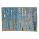 This is based on classic nature painting artworks by Gustav Klimt, Beech Grove 1, 1902. The artwork portrays a dense forest of tall, slender birch trees, with pale trunks marked by dark, vertical lines. The foliage is depicted in shades of blue, green, and yellow, adding a sense of depth and vibrancy to the scene. The forest floor is covered in a layer of orange and brown leaves, creating a striking contrast with the lighter tree trunks. The overall composition uses pointillist and impressionistic techniques, giving the image a lively, textured appearance. The verticality of the trees emphasizes the serene and rhythmic structure of the forest.