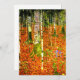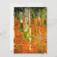 Card featuring Gustav Klimt’s painting Farmhouse with Birch Trees (1903). An autumnal landscape of orange leaves in a birch forest with beautiful blue flowers. A wonderful gift for fans of Art Nouveau and Austrian art.