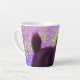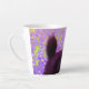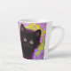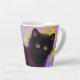 Latte Mug featuring a Gustav Klimt black kitten! This wide-eyed beauty poses in a green field of purple flowers. A thoughtful gift for cat lovers and Austrian art enthusiasts!