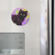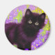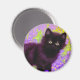 Magnet featuring a Gustav Klimt black kitten! This wide-eyed beauty poses in a green field of purple flowers. A thoughtful gift for cat lovers and Austrian art enthusiasts!