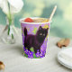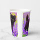 Paper Cups featuring a Gustav Klimt black kitten! This wide-eyed beauty poses in a green field of purple flowers. A thoughtful gift for cat lovers and Austrian art enthusiasts!