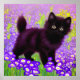 Poster featuring a Gustav Klimt black kitten! This wide-eyed beauty poses in a green field of purple flowers. A thoughtful gift for cat lovers and Austrian art enthusiasts!