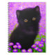 Notebook featuring a Gustav Klimt cat! This fluffy kitty sits in a green field of purple flowers. A purr-fect gift for cat lovers and Austrian art enthusiasts!