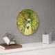 Clock featuring Gustav Klimt’s oil painting Garden with Roosters (1917). Two brown chickens stand on a garden path. Beautiful pink, red, and white flowers bloom along the path. A great gift for fans of Art Nouveau and Austrian art.