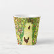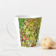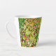 Latte Mug featuring Gustav Klimt’s oil painting Garden with Roosters (1917). Two brown chickens stand on a garden path. Beautiful pink, red, and white flowers bloom along the path. A great gift for fans of Art Nouveau and Austrian art.