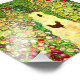 Photo Print featuring Gustav Klimt’s oil painting Garden with Roosters (1917). Two brown chickens stand on a garden path. Beautiful pink, red, and white flowers bloom along the path. A great gift for fans of Art Nouveau and Austrian art.