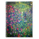 Notebook featuring Gustav Klimt’s oil painting Italian Garden Landscape (1913). A beautiful garden of colourful flowers: red, white, pink, purple. A great gift for fans of Art Nouveau and Austrian art.