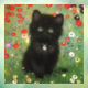Window Cling featuring a Gustav Klimt kitten! This black kitty wears a silver collar and sits in a field of red, blue, white, and yellow flowers. A wonderful gift for cat lovers and Austrian art enthusiasts!