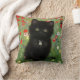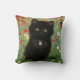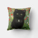 Pillow featuring a Gustav Klimt kitten! This black kitty wears a silver collar and sits in a field of red, blue, white, and yellow flowers. A wonderful gift for cat lovers and Austrian art enthusiasts!