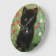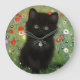 Clock featuring a Gustav Klimt kitten! This black kitty wears a silver collar and sits in a field of red, blue, white, and yellow flowers. A wonderful gift for cat lovers and Austrian art enthusiasts!