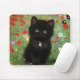 Mouse Pad featuring a Gustav Klimt kitten! This black kitty wears a silver collar and sits in a field of red, blue, white, and yellow flowers. A wonderful gift for cat lovers and Austrian art enthusiasts!