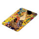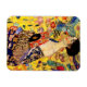 Magnet featuring Gustav Klimt’s oil painting Lady with Fan (1918). A woman wearing a blue kimono holds a red fan against a colourful yellow background of flowers and peacocks. A great gift for fans of Japonisme and European art.